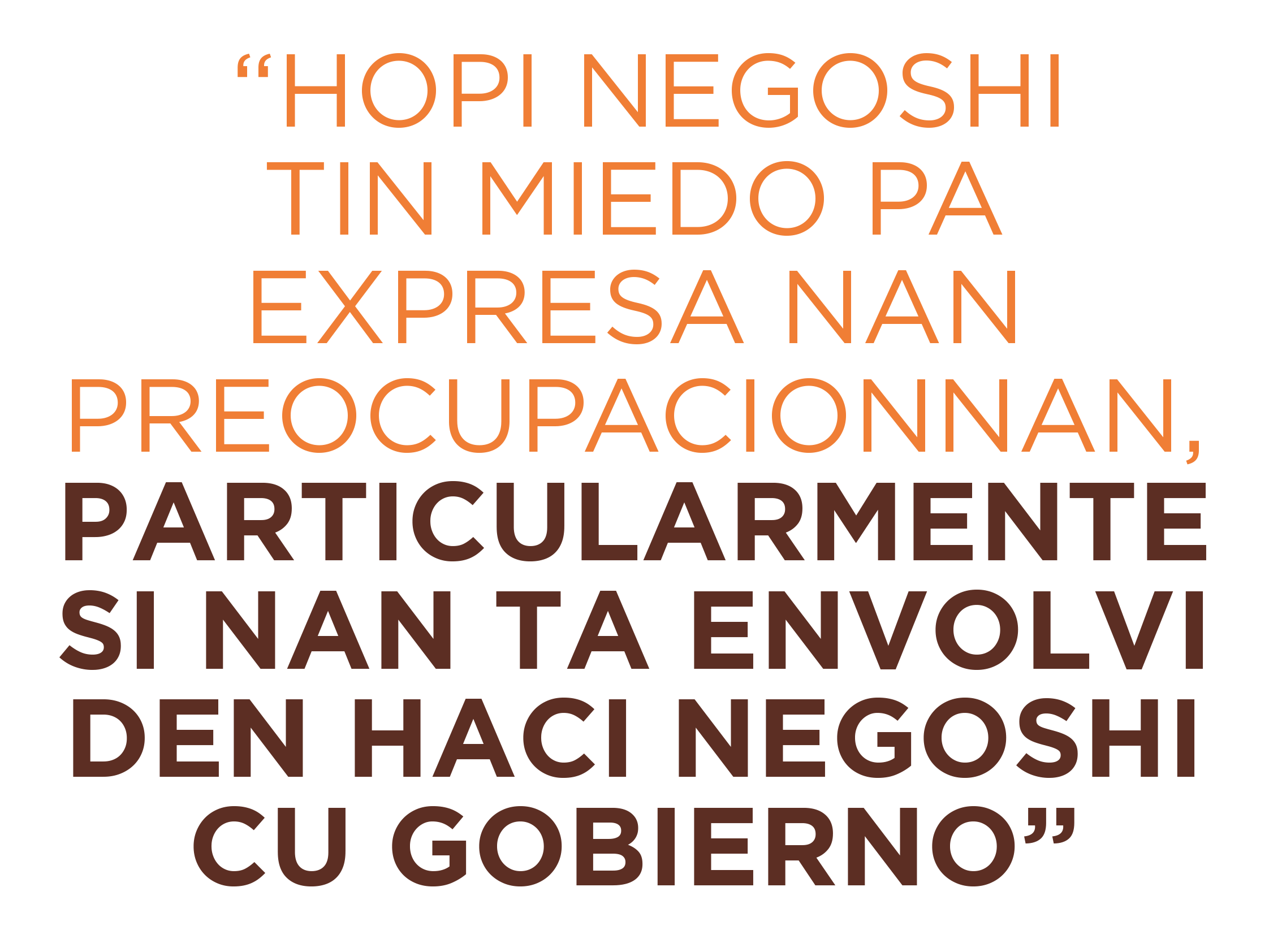 “Hopi negoshi tin miedo pa expresa nan preocupacionnan, particularmente si nan ta envolvi den bende of haci negoshi cu gobierno - Nan por tin preocupacion nan pero ta scoge pa no expresa esakinan. Awor, c’un grupo di apoyo y miembronan di directiva cu ta sinceramente comprometi cu e bienestar di tur nos miembronan, nos ta provee un voz pa cualkier miembro di CUA. E rol aki ta crucial pa sigura cu e interesnan y preocupacionnan di negoshinan local ta keda atendi y trata, creando un ambiente di negoshi mas inclusivo y representativo.