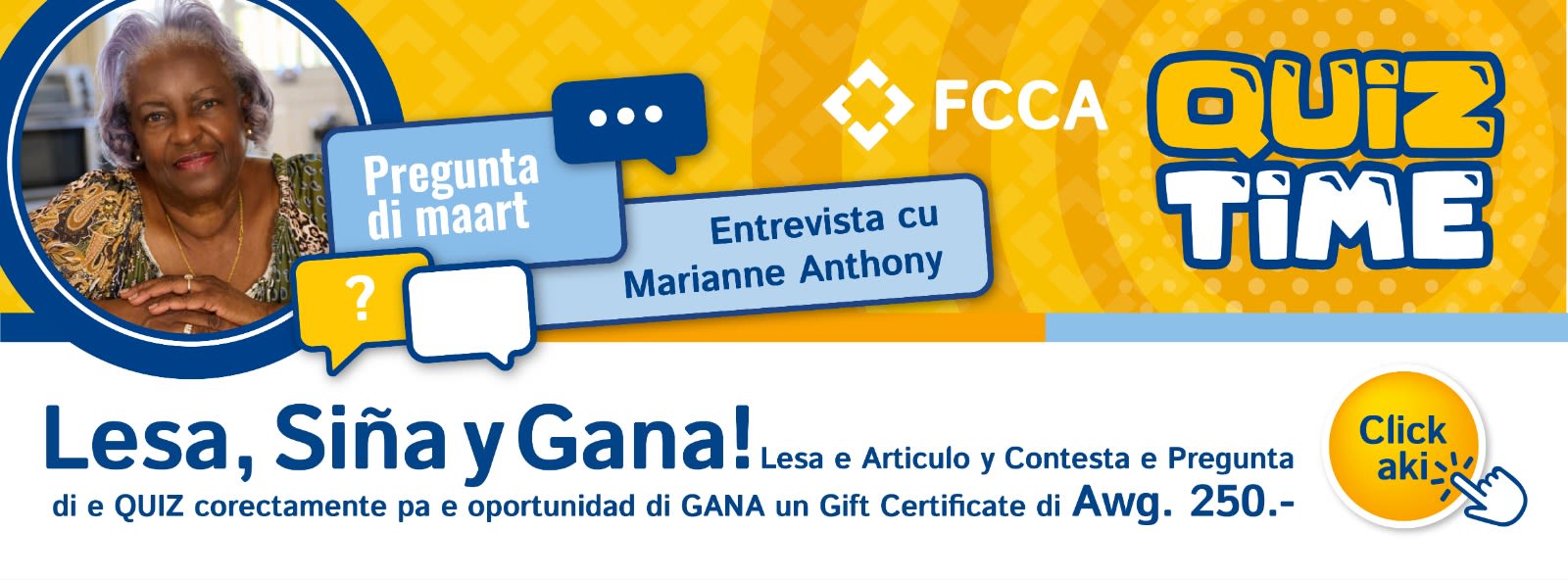 Mi no por ta mas gradicido cu FCCA. Si no tabata pa nan, mi no sa unda mi lo tabata bibando awor. Na mi edad, e cos mas importante ta pa por tin un lugar sigur. FCCA a duna mi e stabilidad ey.”