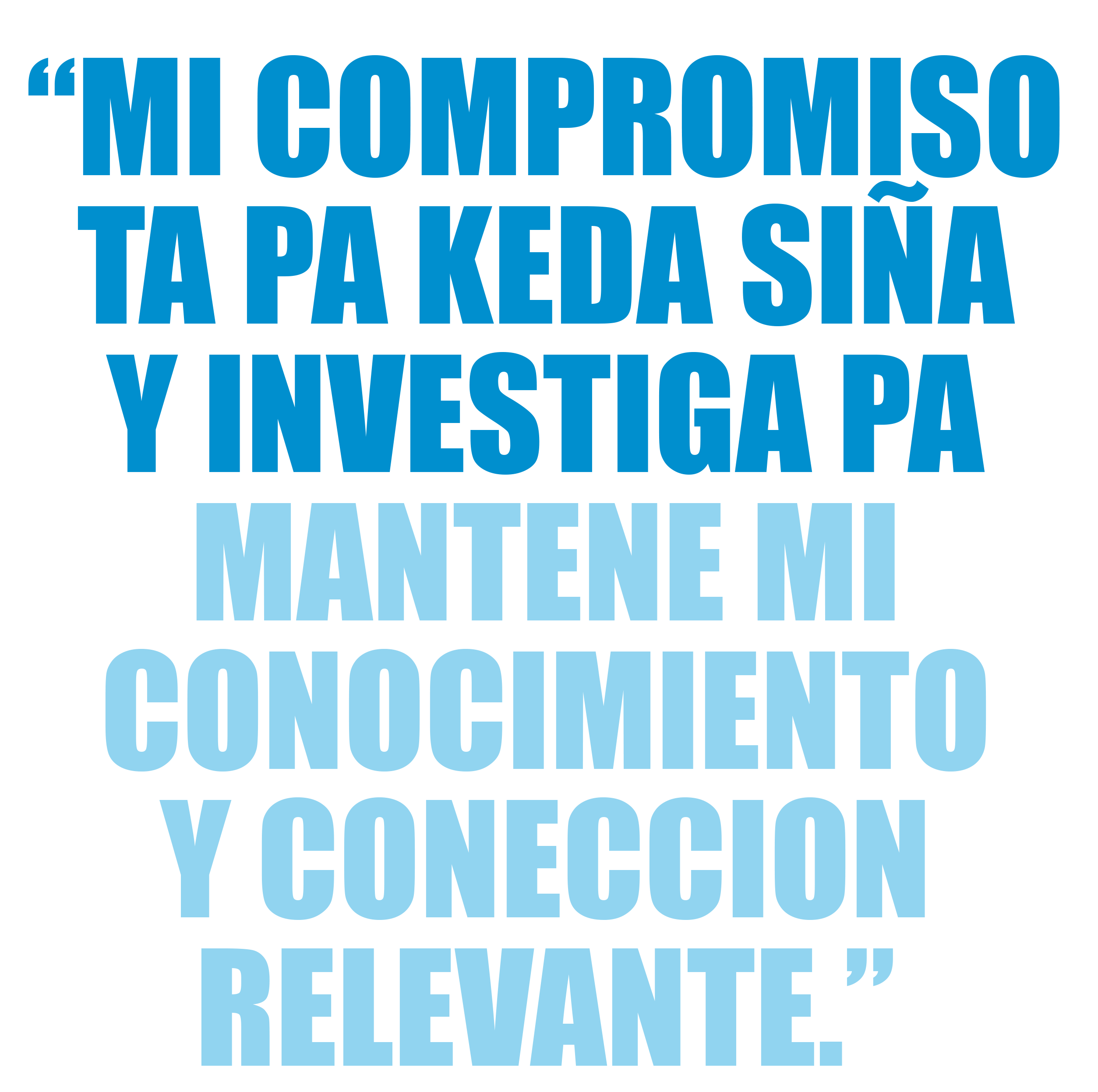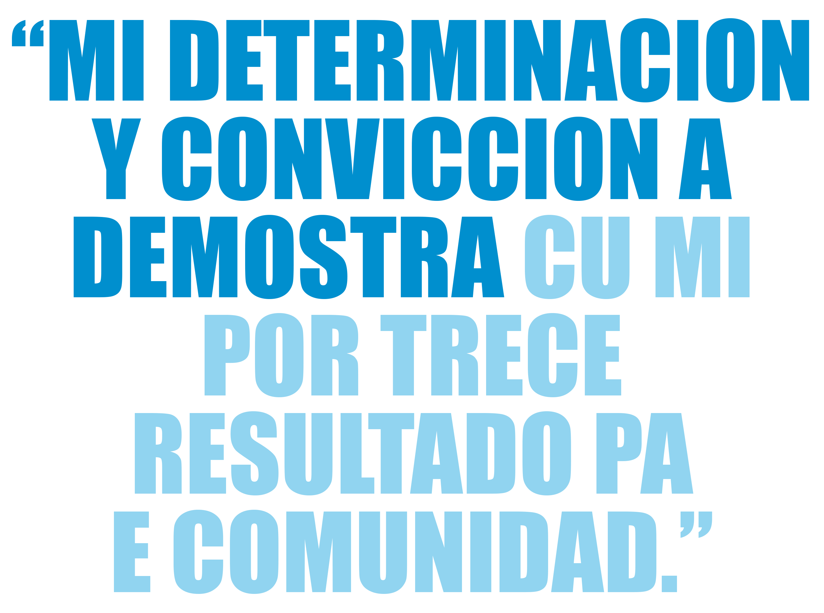 Mas cu tur cos, politica mester trece resultado den e bida diario di nos ciudadanonan y mi a demostra di por logra esaki. Mi cualidadnan ta inclui determinacion, conviccion, perseverancia, innovacion y no tuma un NO como contesta.