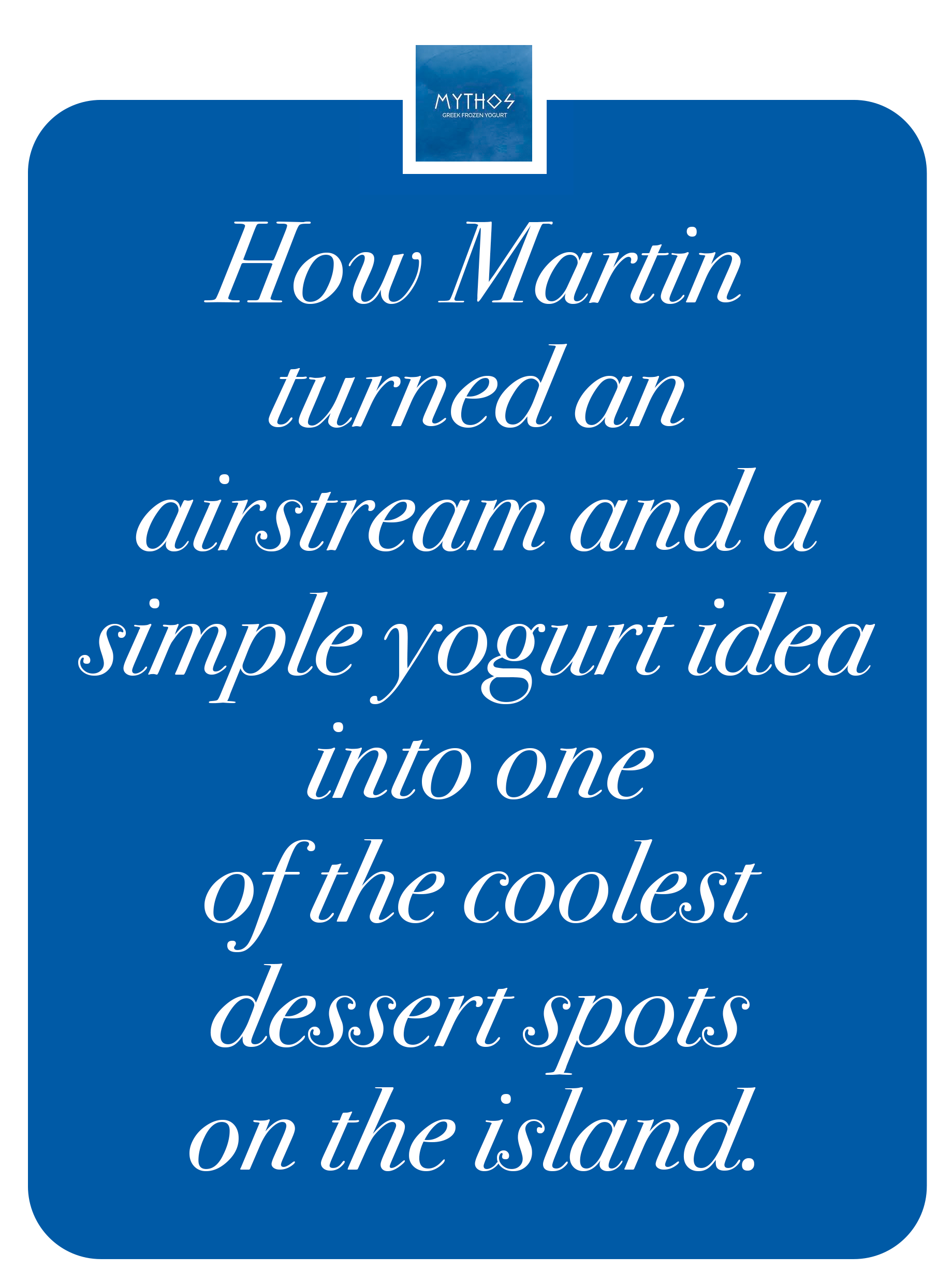 Martin’s idea for Mythos didn’t come overnight. He says the inspiration became clearer during a series of trips with his sister through the Mediterranean region.“We were very drawn to the Mediterranean lifestyle fresh, natural, and healthy. We liked the combination of Greek yogurt with the flavor of a dessert and ice cream. The idea was: maybe we can make a treat that’s delicious but still makes you feel good after eating it.” That became the starting point for a simple idea with a lot of potential.