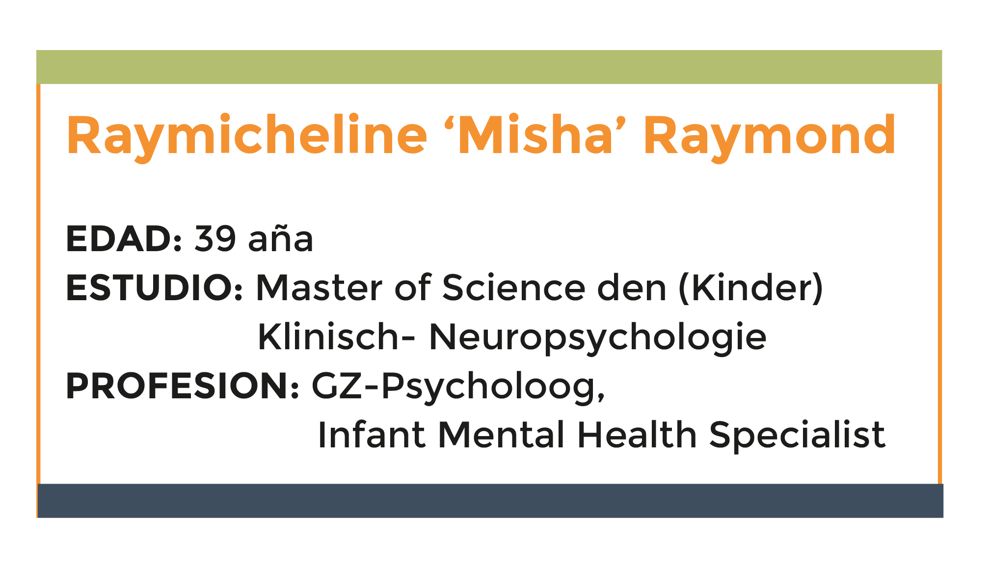Raymicheline ‘Misha’ Raymond (39) ta un profesional den e campo di Infant Mental Health cu mas di un decada di experiencia. Pero awor, como miembro di Parlamento pa RAIZ, su nomber ta den boca di tur hende despues di e caida di e coalicion di gobierno entre MEP y RAIZ den September 2024. Aunke su partido tabata parti di gobierno, Misha a scoge pa no duna su apoyo durante un voto crucial, preferando na mantene su independencia den decisionnan politico. Su decision a pone e coalicion den un ruptura, desafiando e structura di poder na e momento ey. Pakico? Mientras hopi oponentenan ta referi na dje como "dificil," segun Misha, esaki ta resultado di su firmeza y su compromiso pa lo cual ta husto.