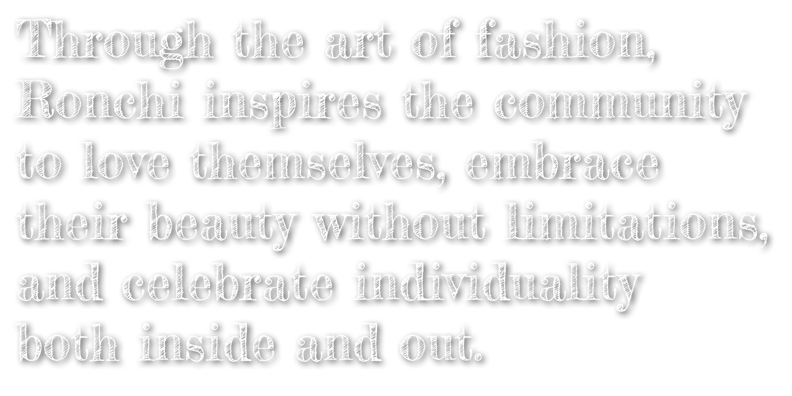 Known for his collections that blend avant-garde designs with versatile styles, Ronchi has always created fashion for everyone—from the sleekest figures to those with curves. In 2004, with his boutique, TRASH BY RONCHI, which is more than just a store, he created a hub for artistic expression and collaboration. “Fashion for everyone” is how he often refers to this initiative. Through TRASH BY RONCHI, he provided a platform for emerging talents, organizing events that unite artists, designers, and the community. His commitment to inclusivity is evident in his designs, which cater to all body types, genders, and personal styles.